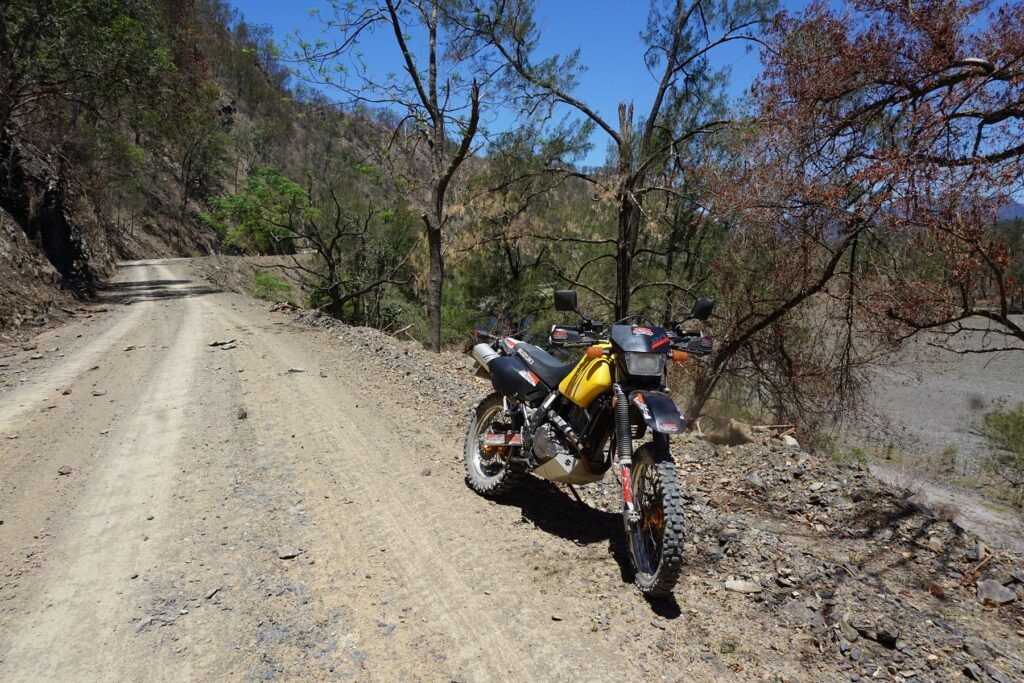 The rocky cliffs along the river banks had been burnt to a crisp, heaps of rocks cascaded down onto the road making for an additional obstacle.