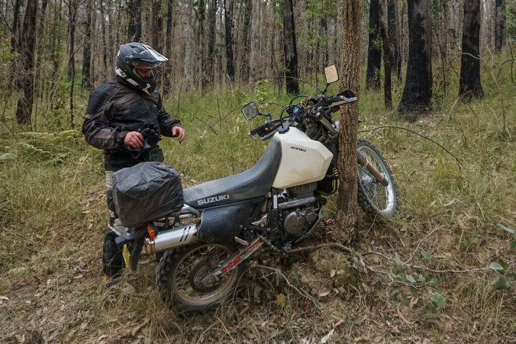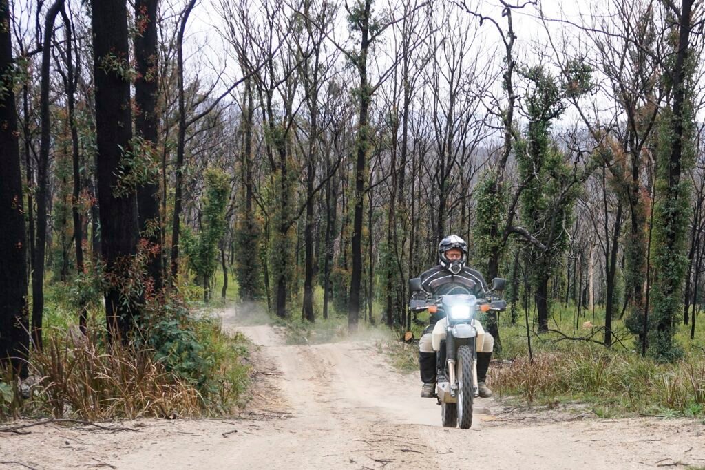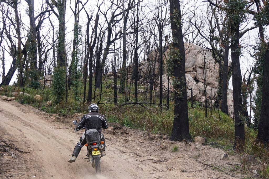 With so many trees burnt Troy must have been getting emotional, so when an unburnt section appeared Troy wasted no time in riding straight through a corner and giving a young tree a hug. Such caring was a beautiful thing to see.