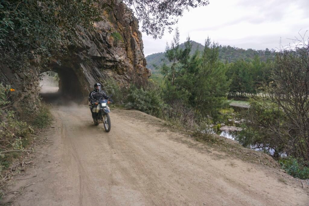 The road was in excellent condition if a little dusty, and we made great time to Dalmorton.  a huge group of riders was regrouped in front of a historic hut so we bolted for the tunnel.