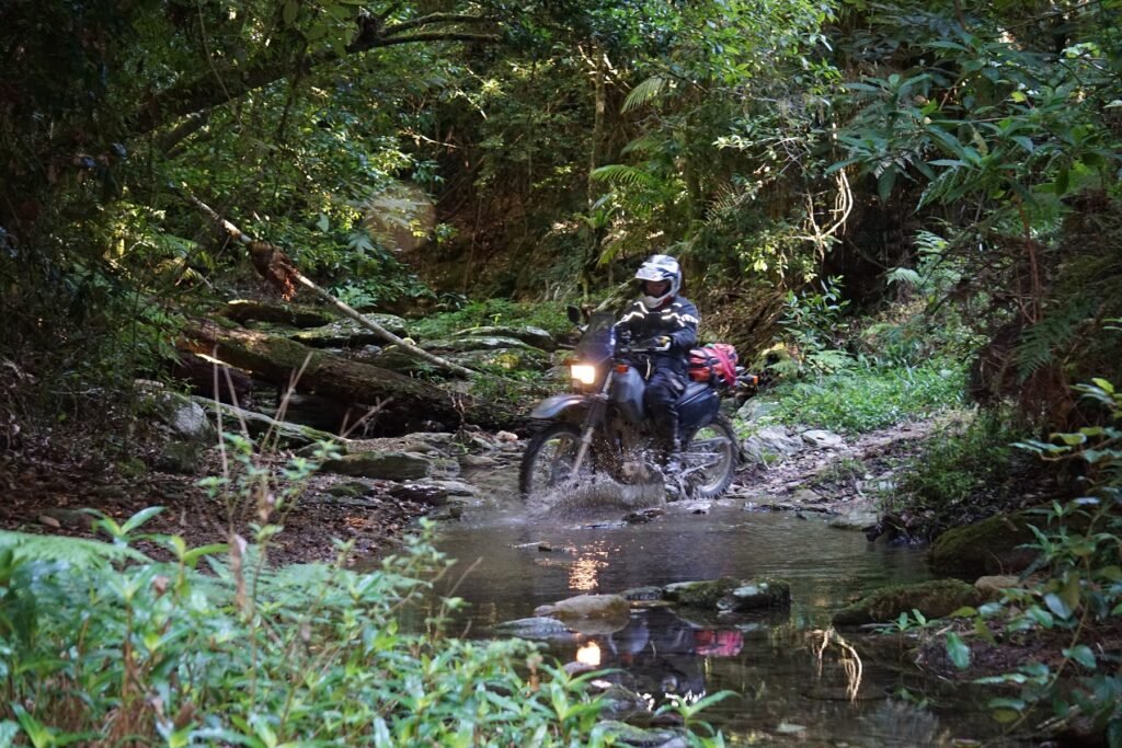 Dark with steep erosion mounds, the odd rut, Kelly’s twists and turns down onto farmland and across the headwaters of the Nambucca River, which unfortunately was low and easy.