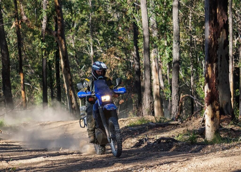 On a cold Saturday morning, we all shivered and shook to the servo at Bellingen for an early start to the ride, despite this spirits were high. The guys, Mark on the Tanami with the red bag on back, white helmet. Craig on the Blue DR, Johnny on the DR with the orange Aero helmet (That should save time on captions) arrived early keen to go.